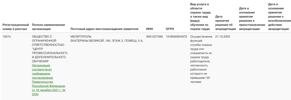 Реестр аккредитованных организаций, оказывающих услуги в области
